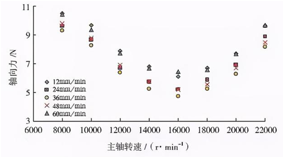 1 主軸轉(zhuǎn)速對鉆削力的影響規(guī)律